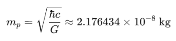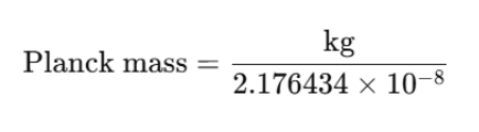 1 kg ÷ 2.176434 × 10⁻⁸ = 約45,940,000プランク質量