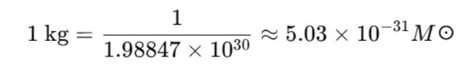 キログラムを太陽質量に変換するには、キログラムの質量を太陽質量の値で割るだけです: